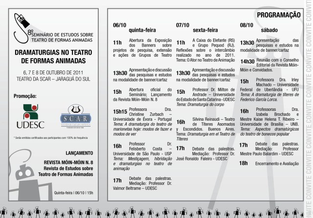 Convite para o 8º Seminário de Estudos sobre Teatro de Formas Animadas!