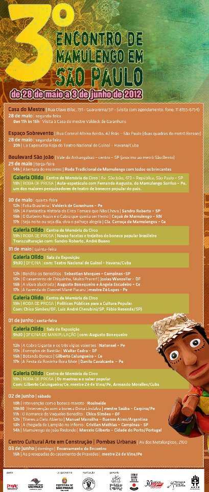 Uma grande festa do teatro de bonecos popular deste país, com rodas de prosa, discussões e articulações sobre a política pública para o mamulengo.