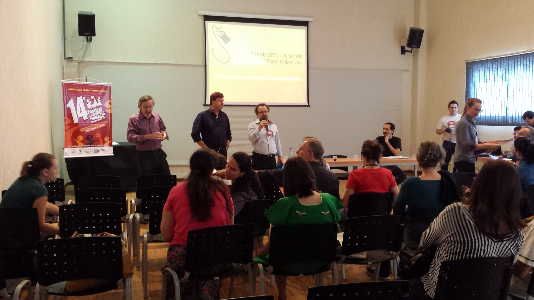 Abertura do 11º Seminário de Estudos sobre Teatro de Formas Animadas – Gilmar Moretti, Udo Vagner e Valmor Beltrame